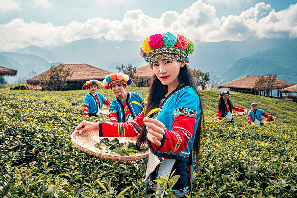 Marvel at spectacular mountain views, terraced tea fields, and traditional Cou architecture
