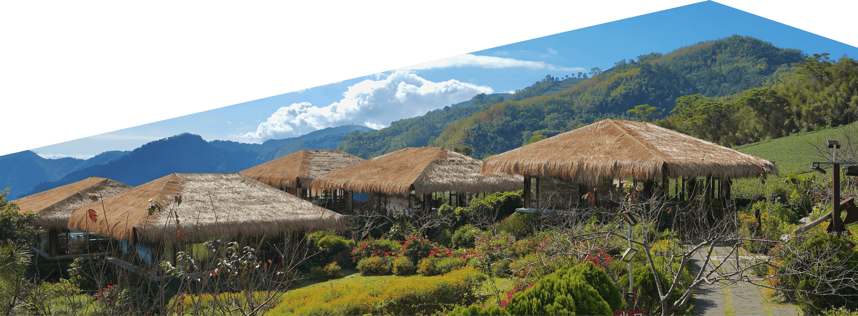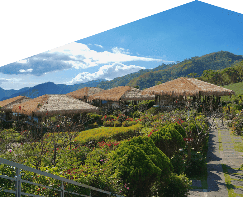 山岳、茶園、伝統家屋